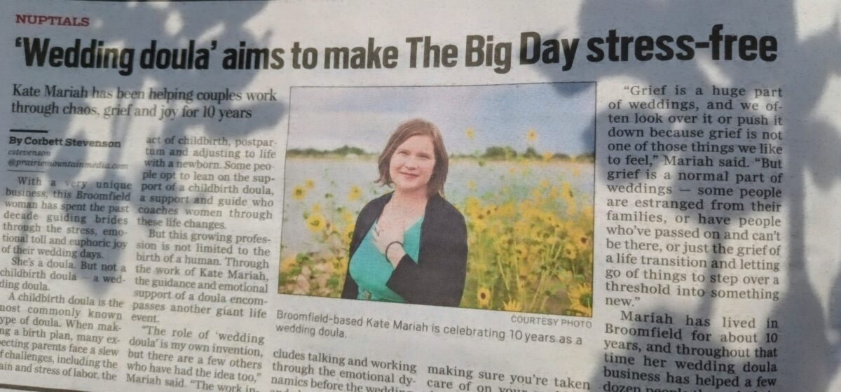 “I was so thankful for my doula’s [Kate’s] presence. She was someone I could be real with (not the perfect, gracious bride if I didn’t want to be), and someone whose sweet, calm energy gave me confidence everything was going to work out!”